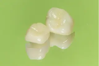 クラウン - セラミックとレジンを混ぜた材料で作られたクラウン。プラスチックが混じっているため、少し変色してしまう可能性があります。